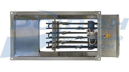 Электрические канальные воздухонагреватели (электрокалориферы) представляют собой корпус, в котором расположены трубчатые электронагреватели (ТЭН). Они создают электрическое сопротивление, которое  преобразует энергию в тепло. Преимущества электрических воздухонагревателей состоят в следующем: они имеют небольшой перепад давления и они недороги в установке.