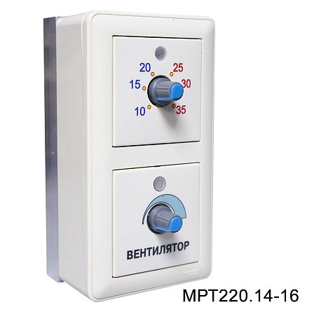 Терморегулятор МРТ220.14-16 управляет нагревателями мощностью до 3-х кВт (максимальный рабочий ток 16 А) и дополнительно имеет блок регулировки скорости вращения вентилятора на 220 В до 440 Вт.